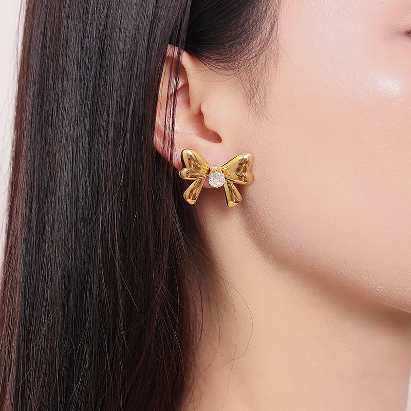 These elegant Ribbon Sparkle Earrings are the perfect accessory for any special occasion. The delicate ribbons add a touch of sophistication, while the sparkling details make a subtle yet eye-catching statement. Elevate your look with these exclusive earrings.