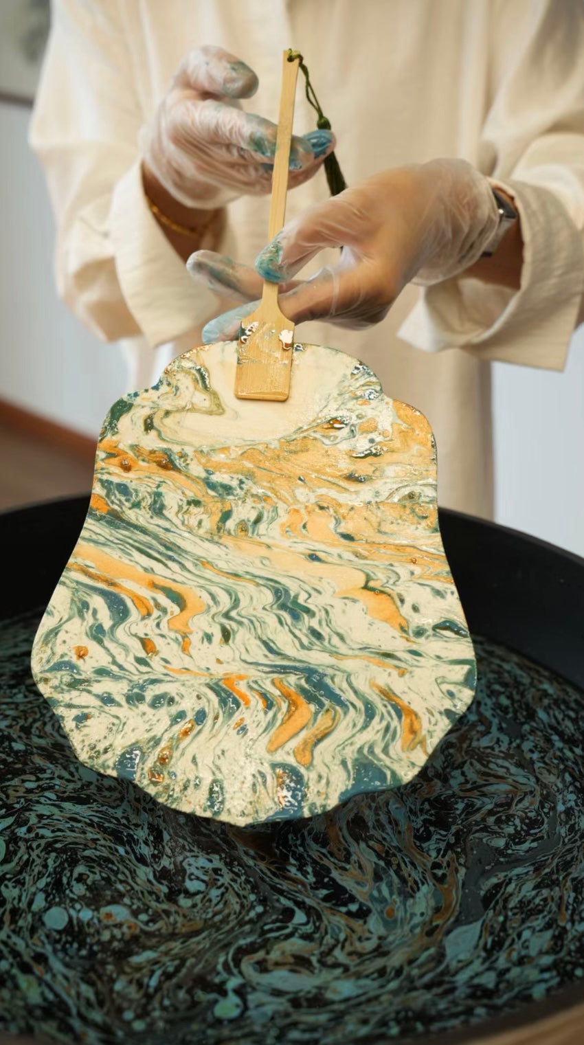 Create a marbled fan that's truly yours! Pick your favorite colors, share the special words you want to be written, and we'll craft a one-of-a-kind fan just for you. Perfect for gifting to someone special—or even treating yourself! Each fan is uniquely designed with care, making it a beautiful, personalized keepsake that stands out. Let your creativity flow and gift something significant!