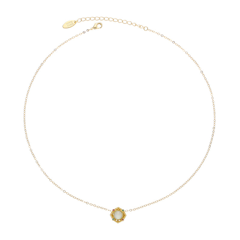 Introducing the Jade Mirror Necklace, a striking representation of timeless beauty. This necklace seamlessly blends ancient frame design with the elegance of jade, creating a truly exquisite piece. Add a touch of classic charm to any outfit with this sophisticated necklace.Treat yourself or a loved one to this exquisite necklace and add a touch of exclusivity to your collection.